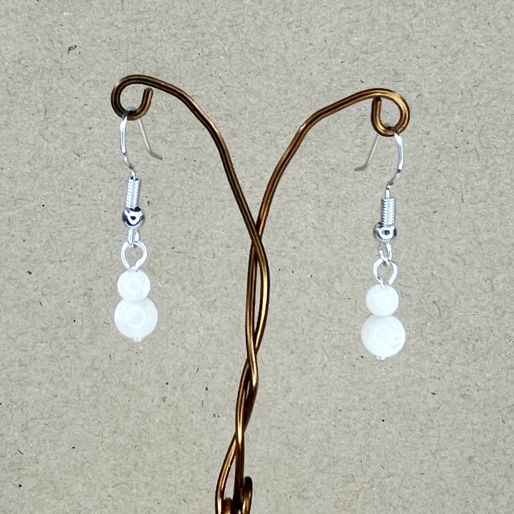 Pair of mother of pearl earrings. Silver plated ear hooks